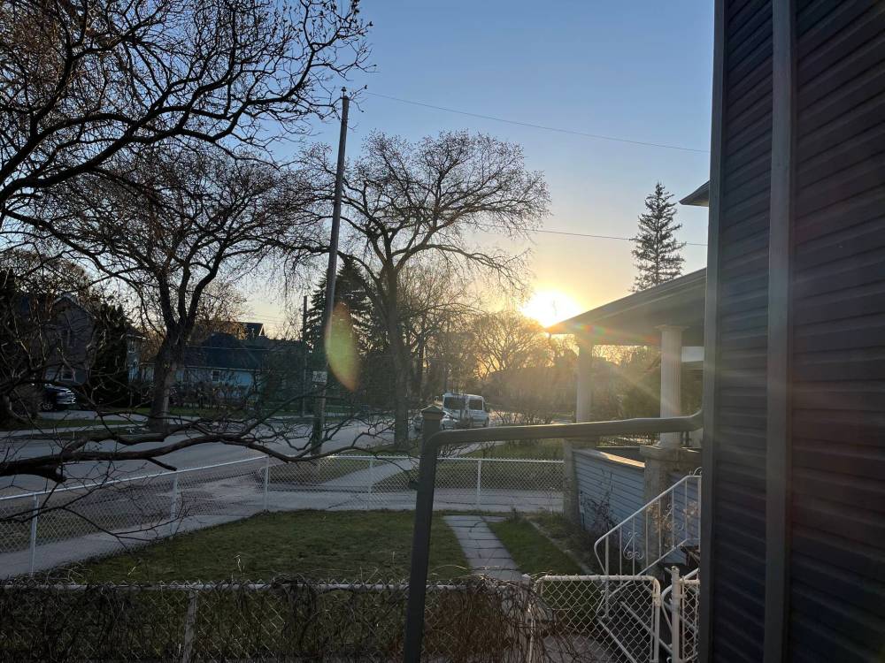 The afternoon continues in bits and pieces. Evening comes. The walkers thin. I can see a sliver of sunset from the screened porch.