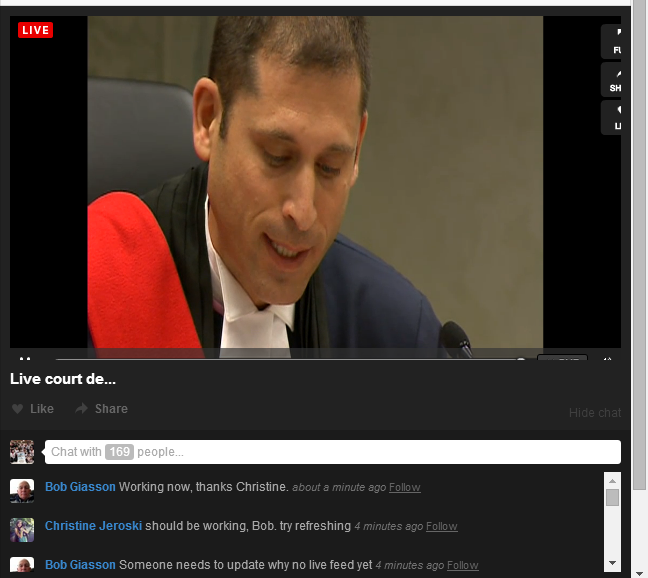 Plenty of courthouse reaction to this week’s launch of the “Cameras in court” pilot project, which went off without a hitch on Wednesday. Senior justice officials were apparently thrilled at the numbers, which included more than 2,000 unique viewers just on the Free Press live stream alone.