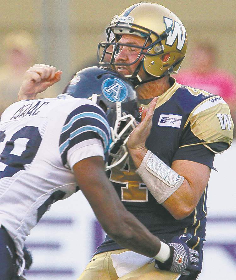 In case you missed it, in a game that meant absolutely nothing to either team outside of evaluation, during the short stanza the Bombers’ No. 1 pivot was in the game, the Argonauts went after him like a Roy (Big Country) Nelson overhand right. Yet once Buck was taken out of the game, they weren’t nearly as aggressive, playing the vanilla brand of football we most often see and expect in the pre-season.