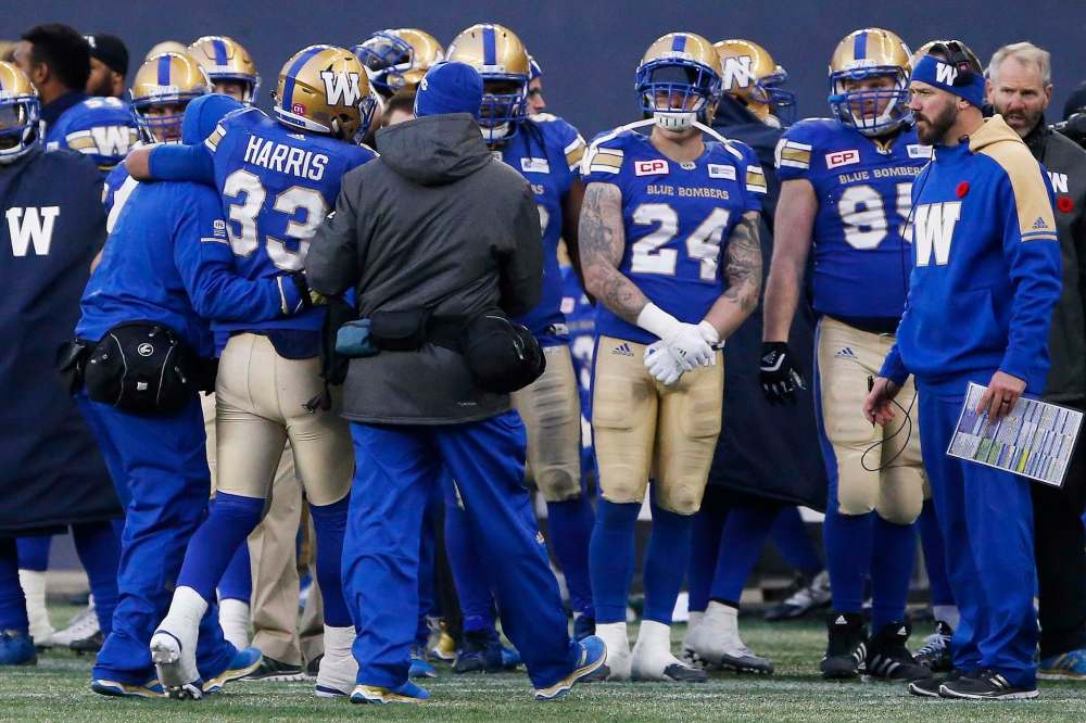Even if it was a bad cramp, which it wasn’t, he should get a week off to make sure there is zero per cent chance of that happening in the playoffs. As for Andrew Harris’s short, unscheduled trip to Planet Unconsciousness — I know what I saw — I wouldn’t care if he came up with an equation this week to end the world’s energy crisis — he gets a week off, too.