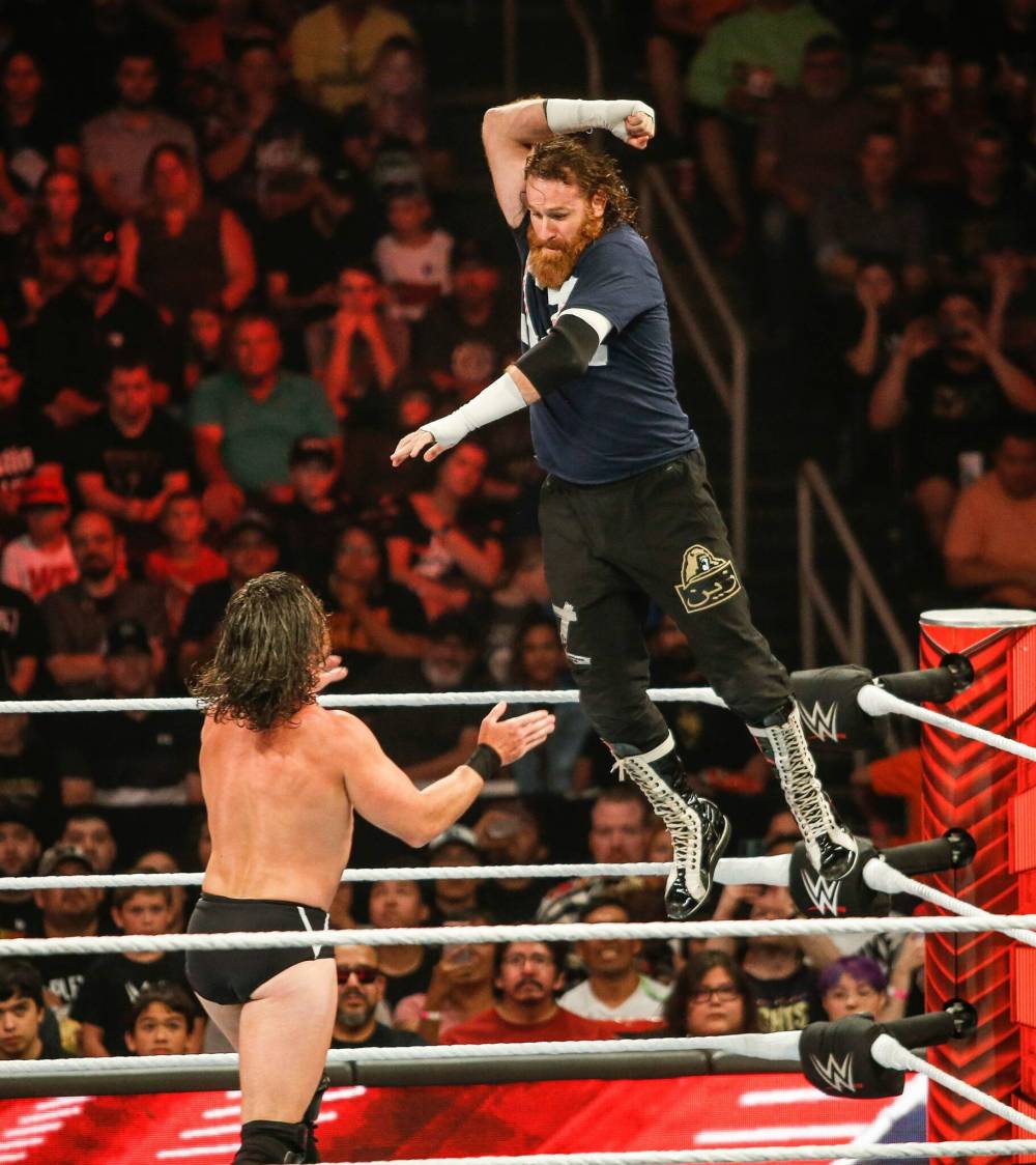 Enter good guy Sami Zayn, the wildly popular pride of Montreal who came out to avenge the recent butt-kicking given to his tag-team champion partner, Kevin Owens (also from La Belle Province) which has left him on the sidelines nursing an injury. (Owens is legitimately hurt, so his ailment was written into the show to allow him time to recover).