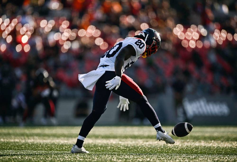 JUSTIN TANG / THE CANADIAN PRESS FILES Montreal Alouettes running back Jeshrun Antwi kicks the ball over the line of scrimmage Saturday for a first down against the Ottawa Redblacks, pulling off the CFL’s trick play of the year.