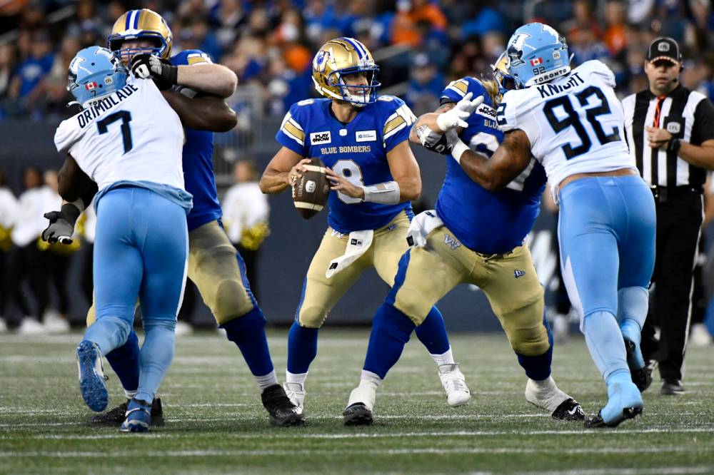 FRED GREENSLADE / THE CANADIAN PRESS FILES The Bombers changed the course of franchise history when they acquired Zach Collaros (8) at the trade deadline four years ago. No trades were made this year on deadline day.