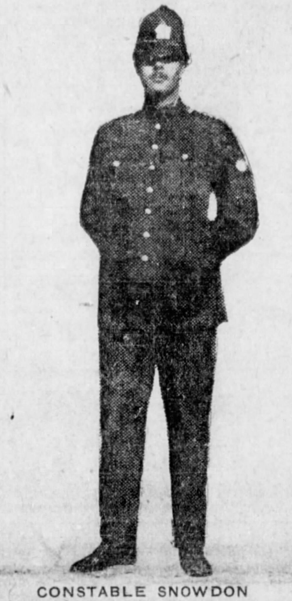 Const, Bernard Snowdon, 30, was a native of Newcastle, England and a seven-year veteran of the police force. He was walking his Main Street beat on the night of Friday, April 5, 1918, and noticed that the door behind Rosenblat’s hardware store at 649 Main St. was broken. He pulled on the latch and entered.