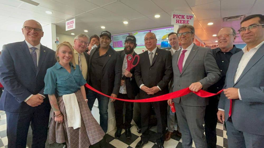 Local politicians and dignitaries helped Kevin and Ravi Ramberran cut the ribbon at Dreamland Diner on March 20.