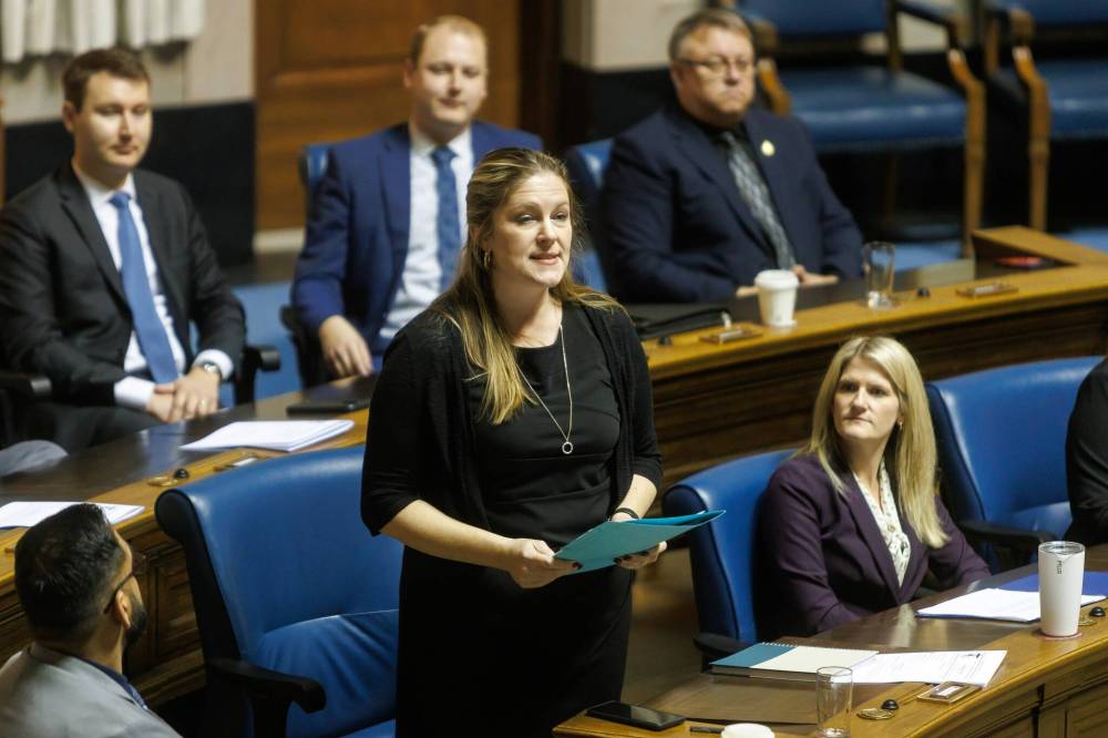 Roblin MLA Kathleen Cook is pictured here asking a question in the legislature last November.