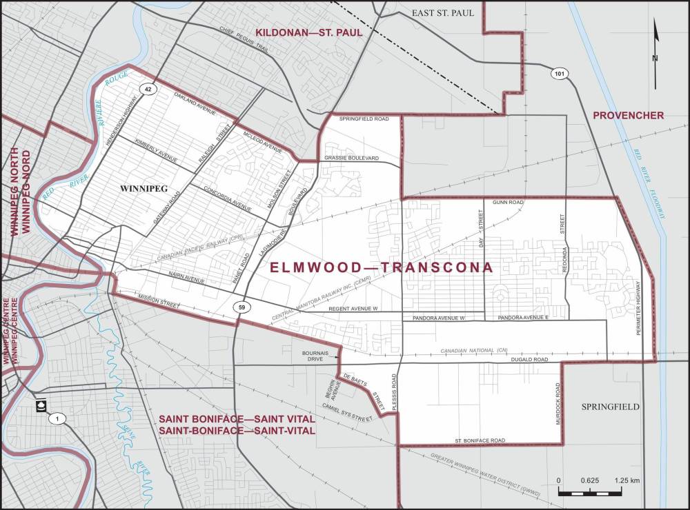 The boundaries of the federal riding of Elmwood-Transcona. Voters in the district will go to the polls on Monday, Sept. 16 to elect a member of parliament to replace Daniel Blaikie.
