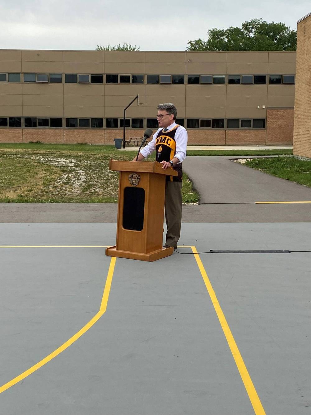 Coun. Brian Mayes (St. Vital) pictured recently at Nelson McIntyre Collegiate for a funding announcement regarding the school’s running track.