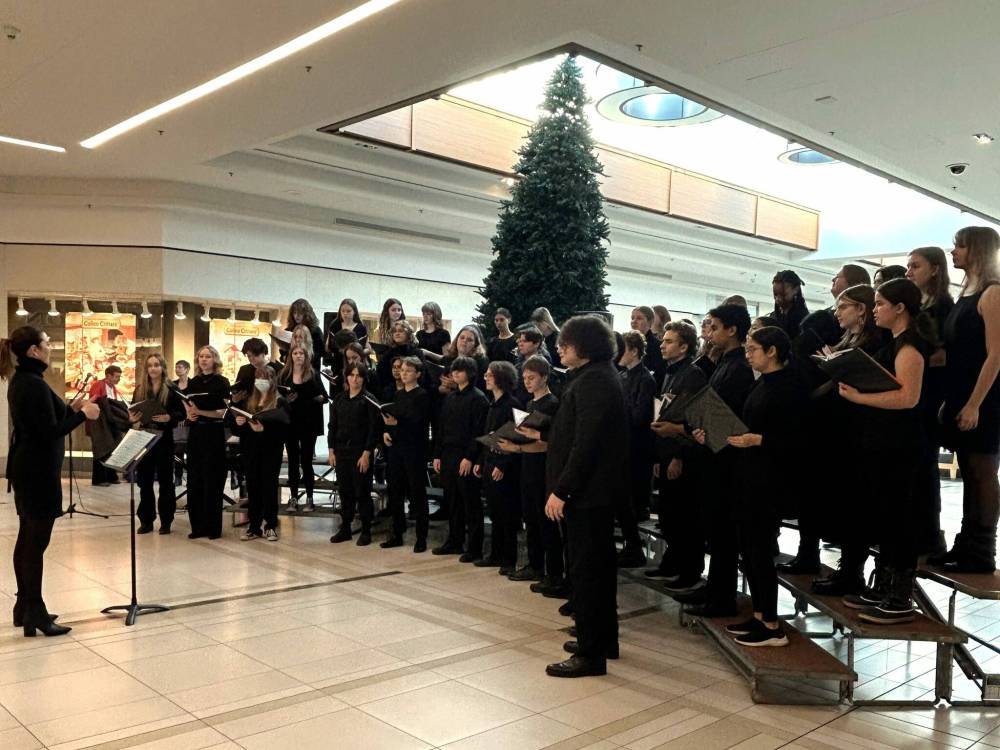 A choir from Collège Jeanne-Sauvé performs at the launch event for Palliative Manitoba’s memory tree at St. Vital Centre on Nov. 23.