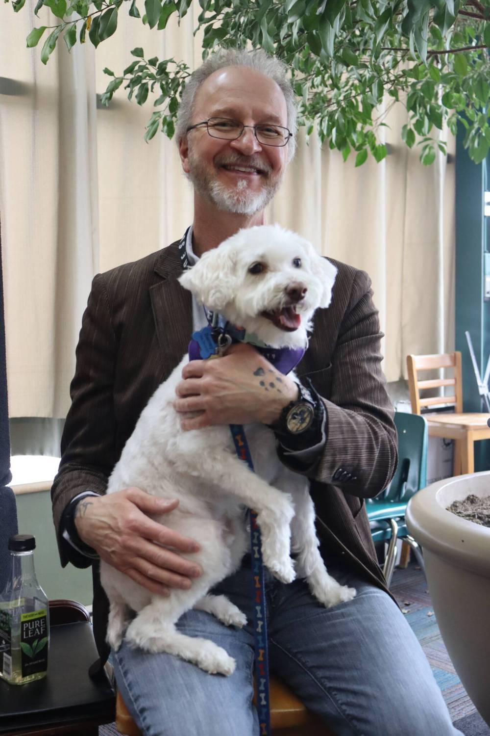 Darrel Hominuk, director of adoptions at Winnipeg Humane Society, pictured with one of the shelter’s licensed therapy dogs.