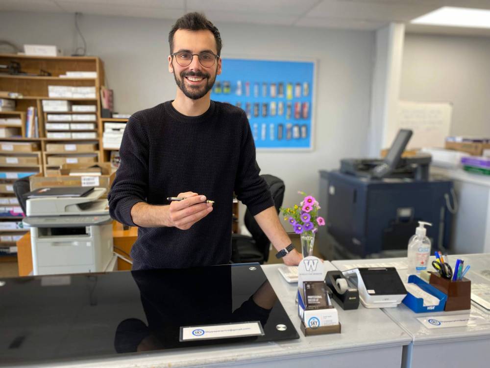 Skyler Moyer, 27, is the owner of Sky Paper. Formerly known as Pen and Paper, which opened its doors in 1989, Moyer took over the business this spring, and hosted a grand opening celebration on June 14 at Unit 6-935 McLeod Ave. While Moyer aims to maintain the spirit of the store going forward, providing copy and printing services, as well as stationery and office needs, he has a grander vision in mind, too.