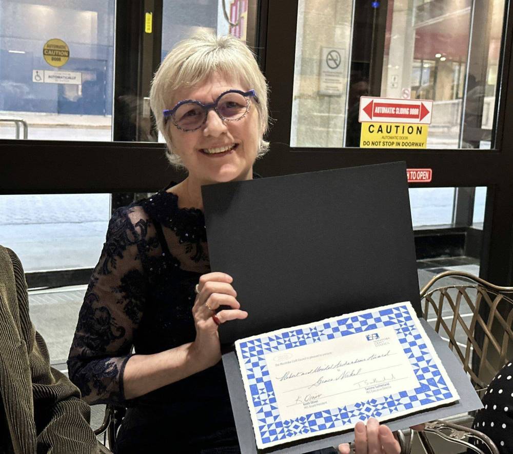 Grace Nickel is pictured at the Manitoba Craft Council’s inaugural Night of Excellence awards dinner recently. Nickel is the first recipient of the new Robert and Meridel Archambeau Award of Distinction.