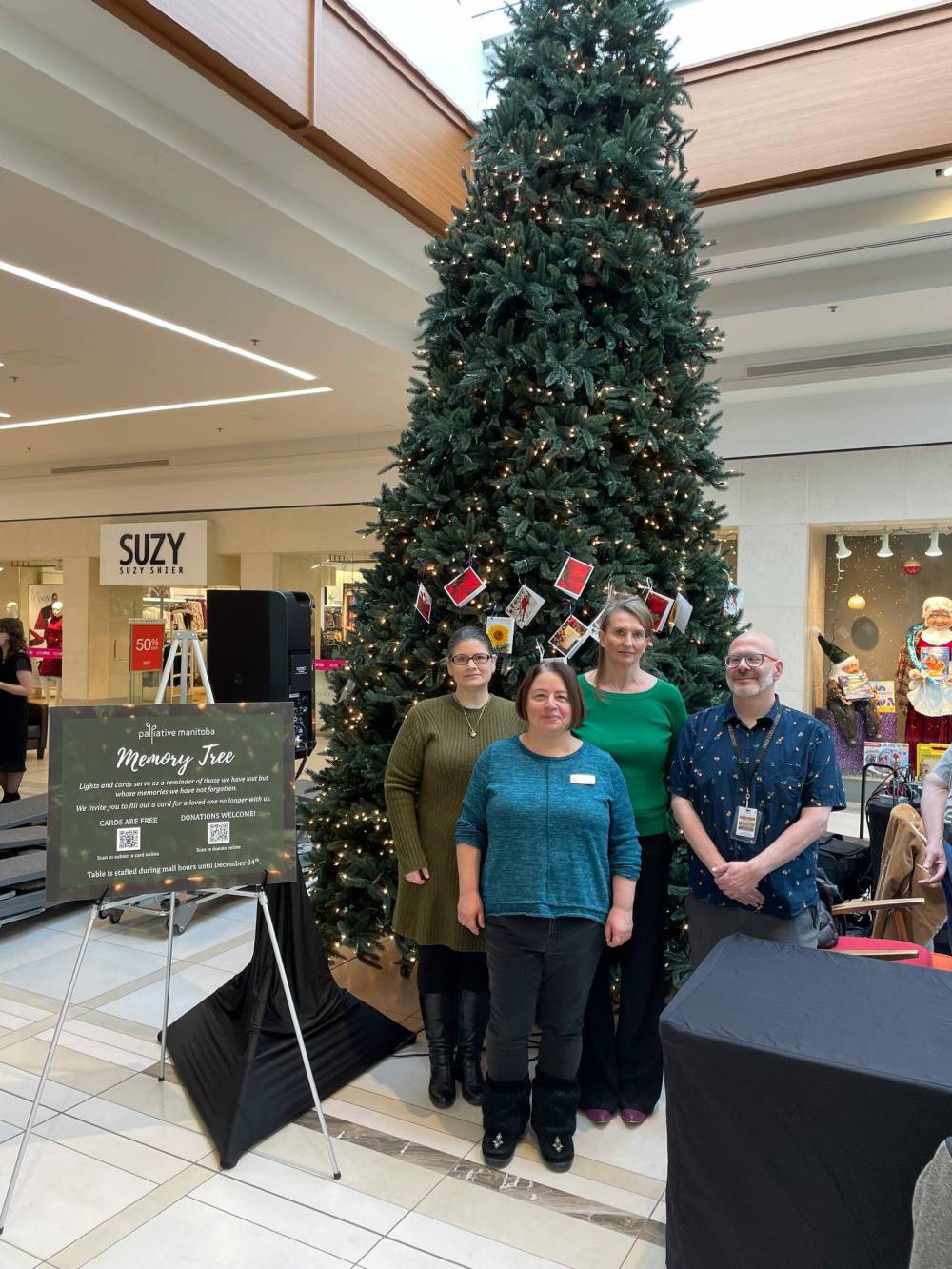 Palliative Manitoba staff are pictured at the opening of its memory tree on Nov. 27 at St. Vital Centre. Pictured, clockwise from top left: Lindsay Felstead, development co-ordinator; Katharine Yurkiw, executive director; Wayne Sandler; community outreach and education co-ordinator; and Kathleen Williamson, volunteer co-ordinator.