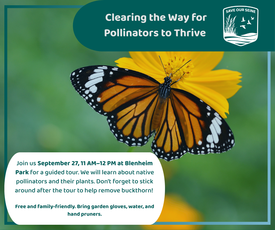 Bring your curiosity, walking shoes, and love for nature! Join Save Our Seine for a free, interactive nature walk along the beautiful Seine River as we explore the important role of pollinators, native plants, and how invasive species threaten our local ecosystems.