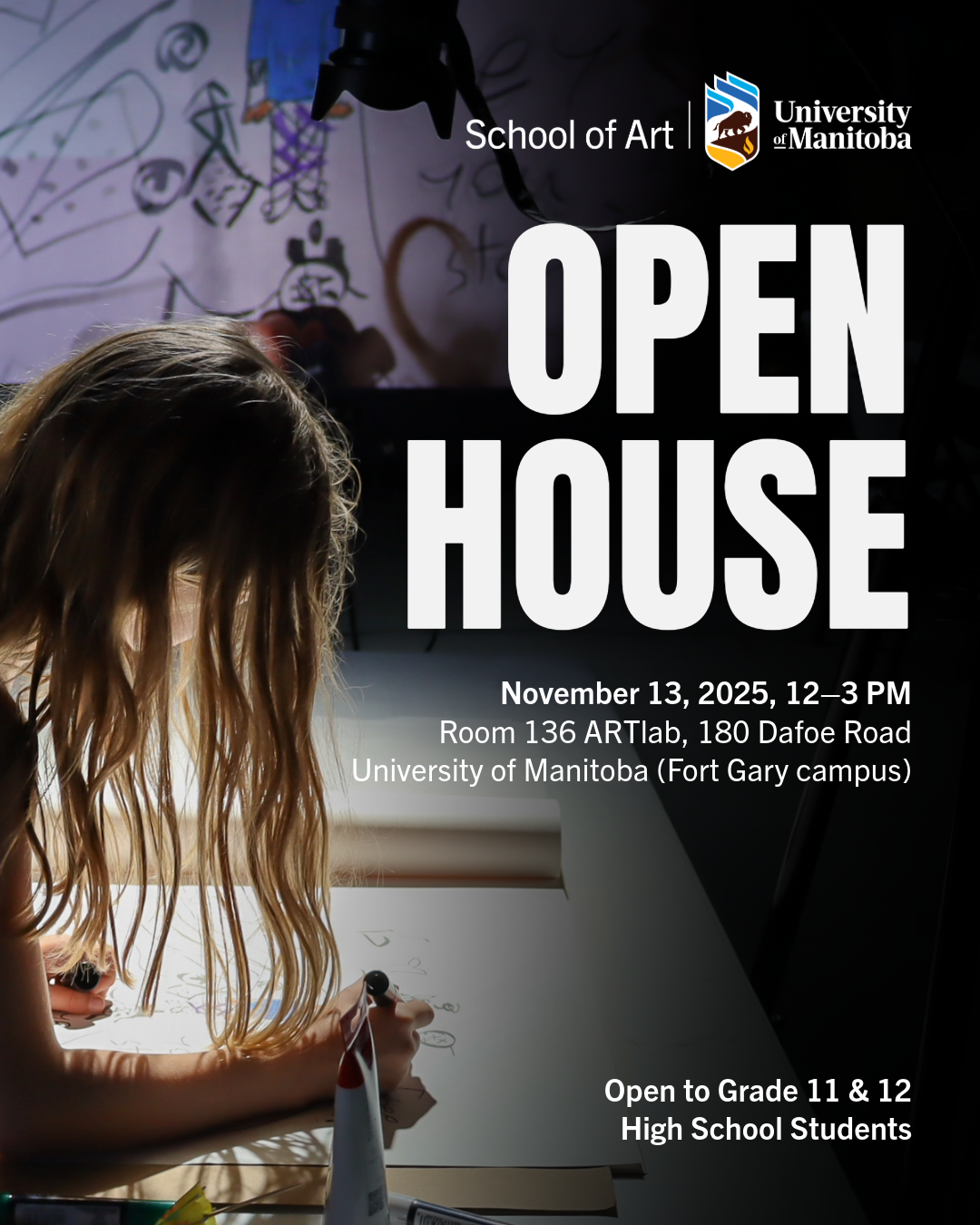 Are you, or someone you know, a Grade 11 or 12 student with a passion for art? Do you dream of pursuing a post-secondary degree in fine arts? Don’t miss the chance to join us at the School of Art’s Open House and experience what it’s like to be a student at the University of Manitoba!