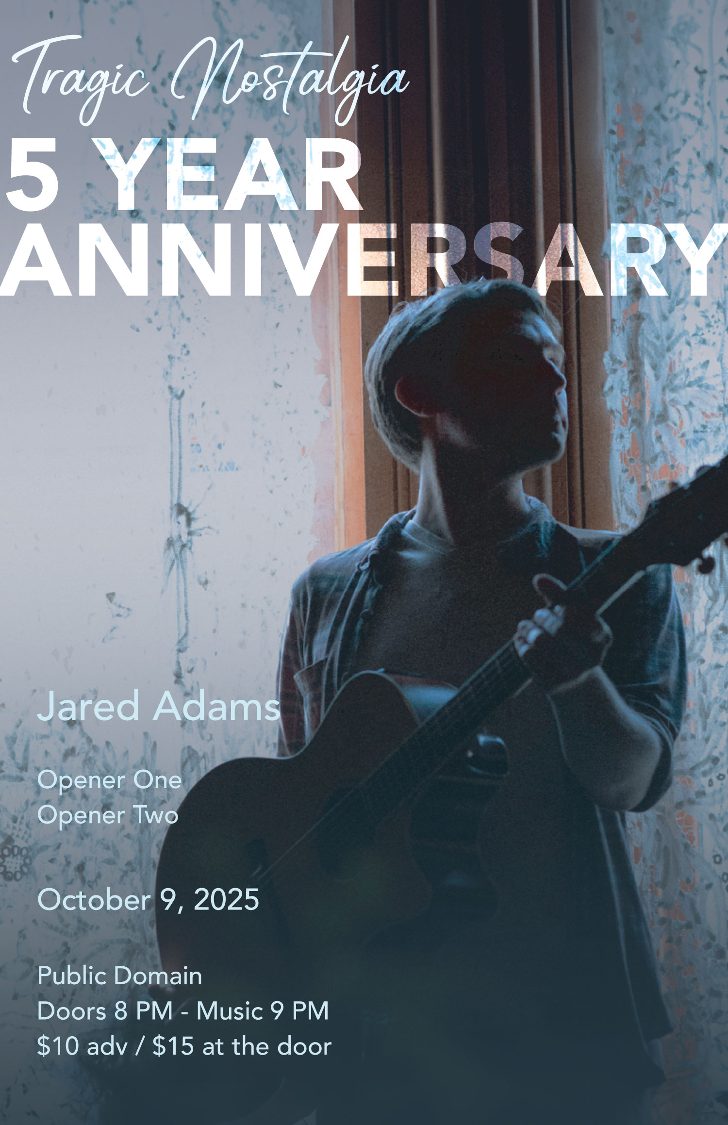 Winnipeg singer-songwriter Jared Adams will mark the 5-year anniversary of his debut album Tragic Nostalgia with a performance at Public Domain on October 9, 2025. For the first time since its release, the album will be performed front-to-back in its entirety, giving fans the chance to experience the record in a new and immersive way.