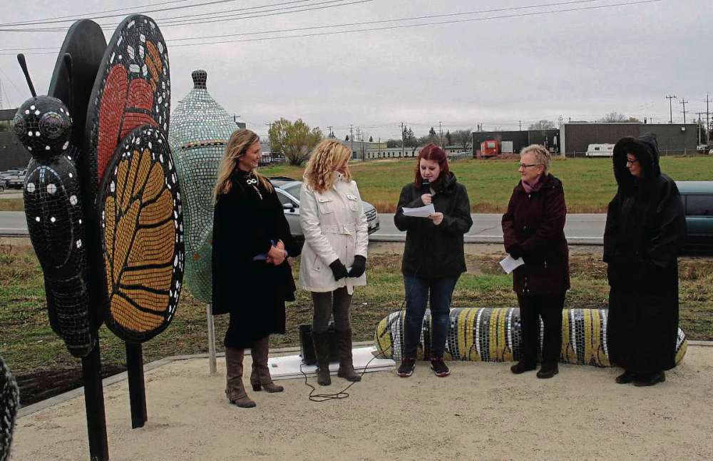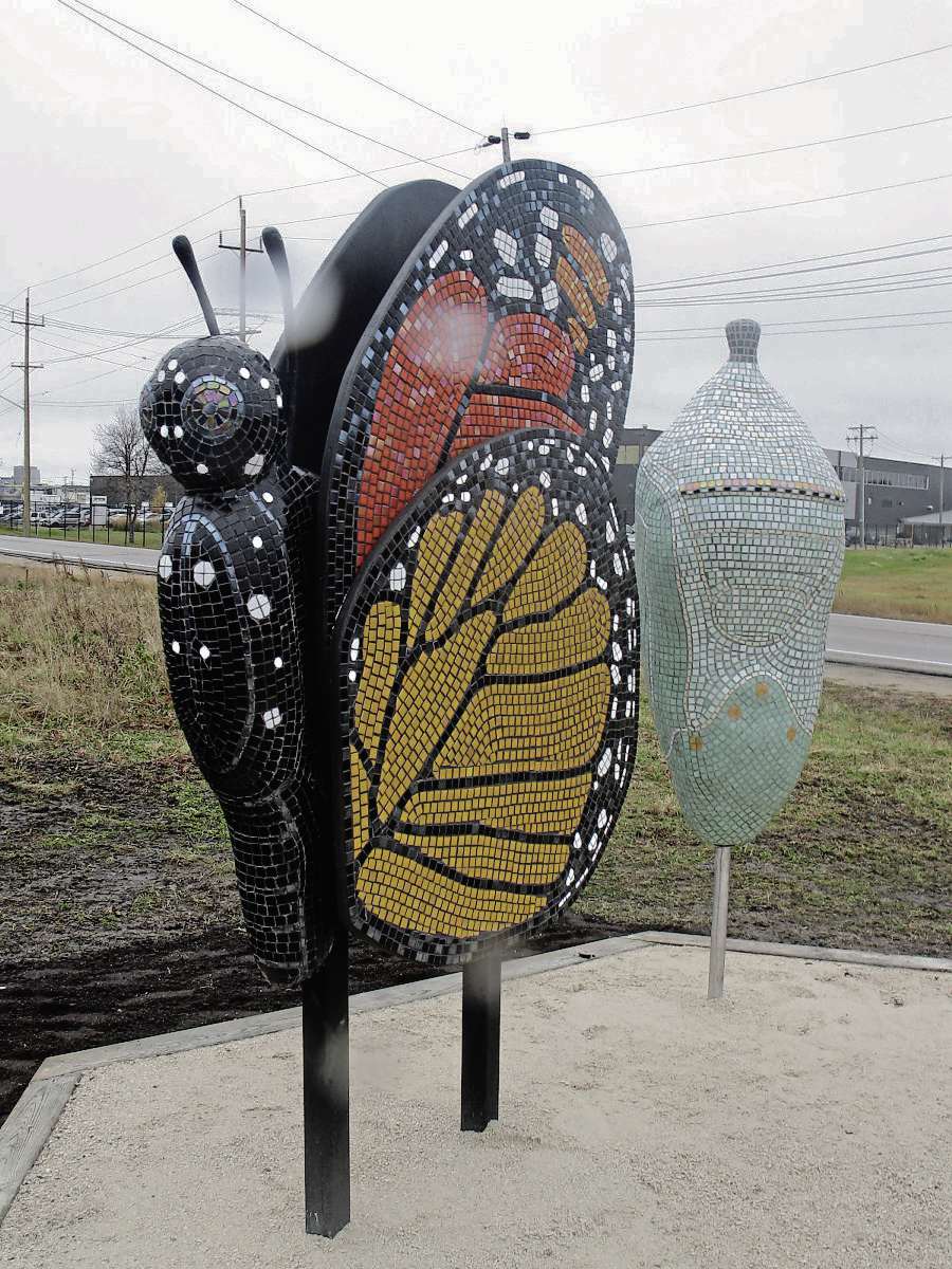 The Life Journey public art project depicting the life cycle of the monarch butterfly was unveiled on Oct. 28. The sculpture was conceptualized by the Girls’ Club of Kildonan East Collegiate (845 Concordia Ave.) and artist Denise Préfontaine, who were matched through the Winnipeg Arts Council’s Youth WITH ART program.