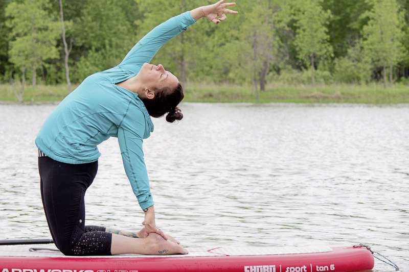 At the heart of Wild Path is stand-up paddleboard yoga (SUP), where participants practise yoga while on the water. Bourgeois generally holds her classes at FortWhyte Alive and various locations across the province, such as Clearwater Lake Provincial Park and Riding Mountain National Park. As well, she also holds yoga hikes and backcountry retreats, and thrives on introducing her students to new surroundings.
