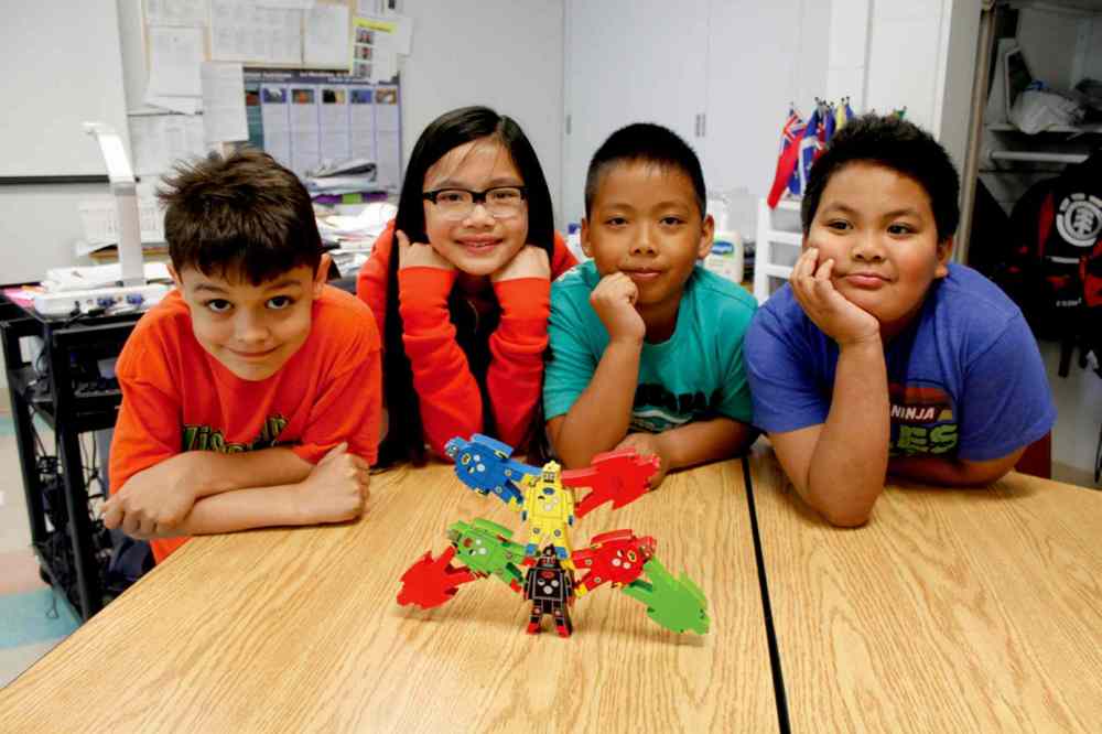 Cindy Chan These Grade 4 École Sacré-Coeur students managed to balance seven figurines on top of one.