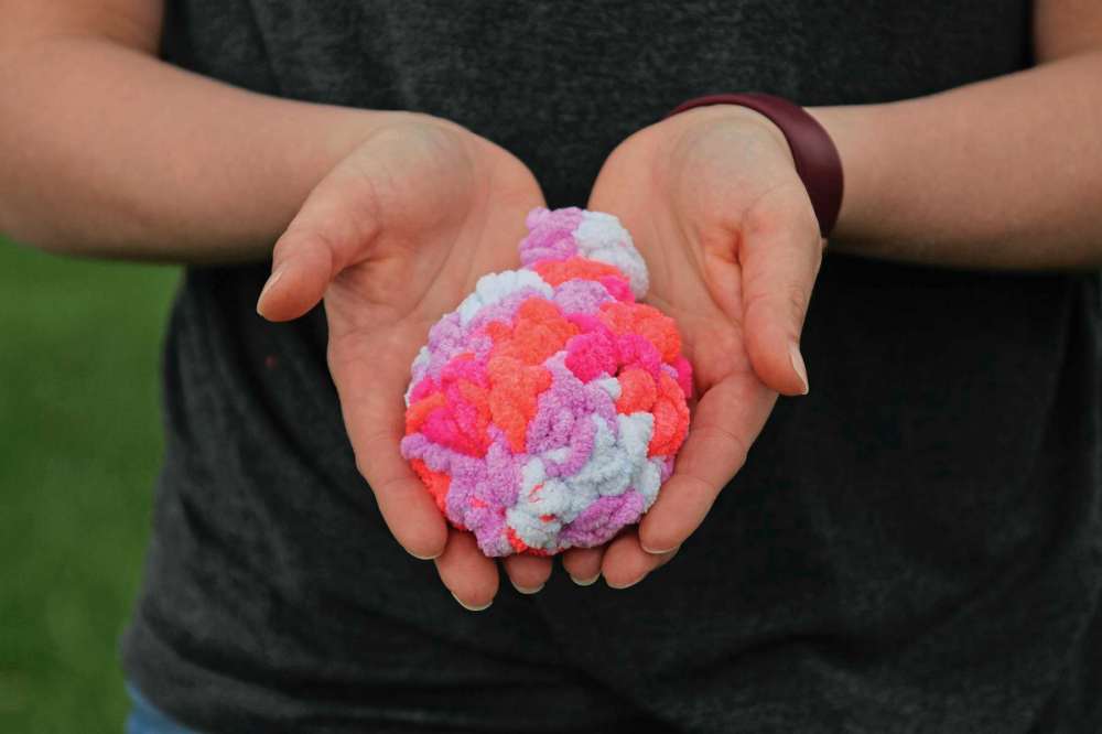 But these water balloons aren’t made from rubber or plastic — they’re made of yarn.