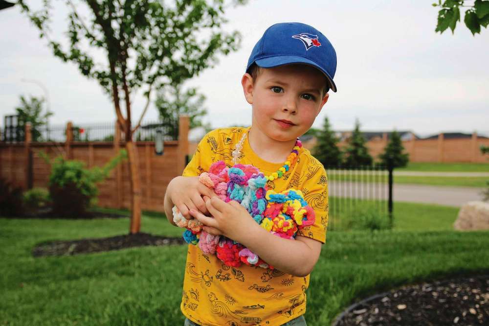 Photo by Katlyn Streilein Daniel MacEachern holds an an armful of balloons at his Headingley home on June 8.