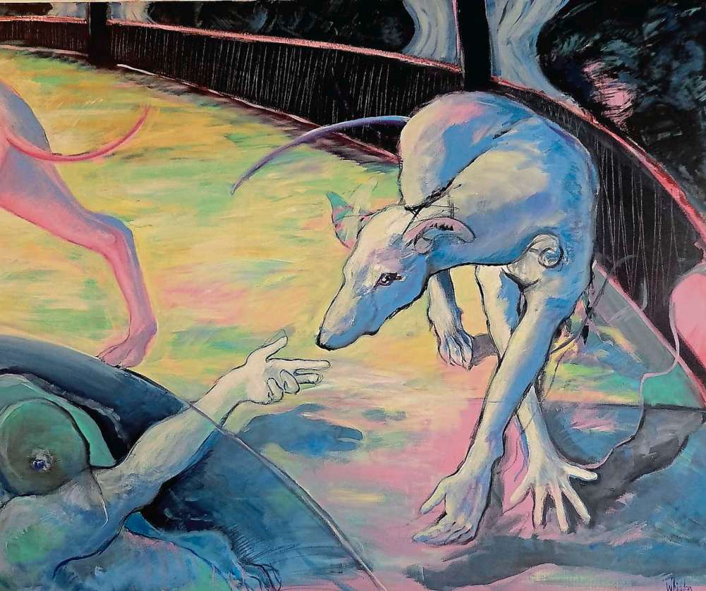 River Heights resident Randal Newman has curated an exhibit of Whiddon’s work titled I had a Friend who Painted Dogs, featuring over a dozen pieces that have been hidden for nearly three decades. The show opened at Warehouse Artworks (222 McDermot Ave.) on Sept. 2.