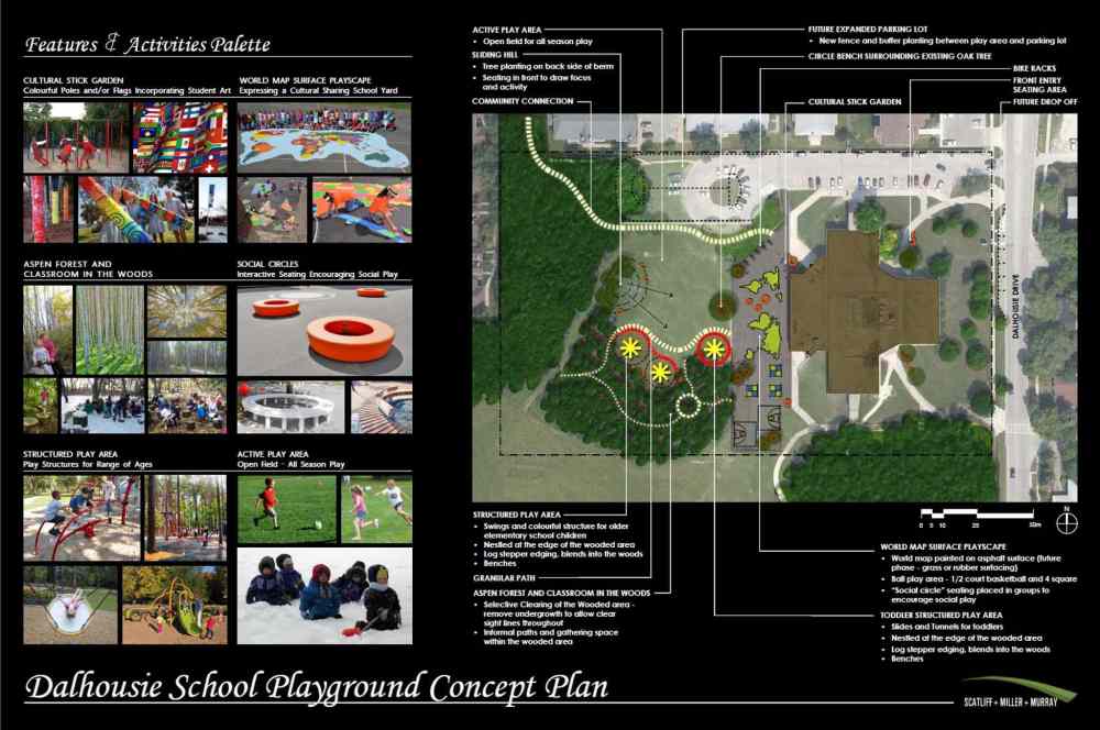 The existing facility is over 25 years old, missing components such as a zip line, and is inaccessible to students in wheelchairs due to the pea stone play surface. It is also the main play structure for three daycares, a before and after school program and the 423 students that attend Dalhousie School.