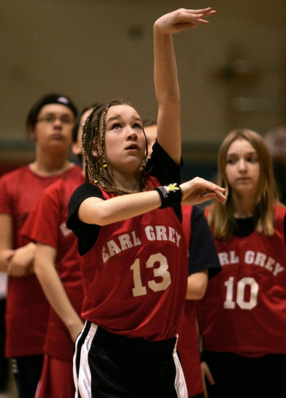 A young player tries to put a basketball through a hoop at a past WMBA Hoopfest. This year’s event, the first Posthumus Family Hoopfest, runs April 4 at the Sport for Life Centre.