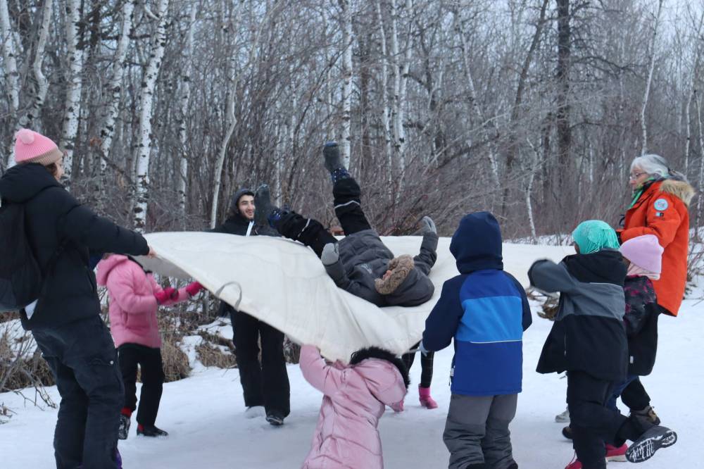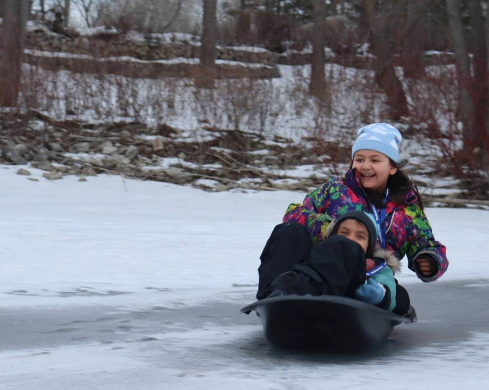 Kids aged six and older engaged in tobogganing, snowshoeing, scavenger hunts, and bannock roasts, among other activities.