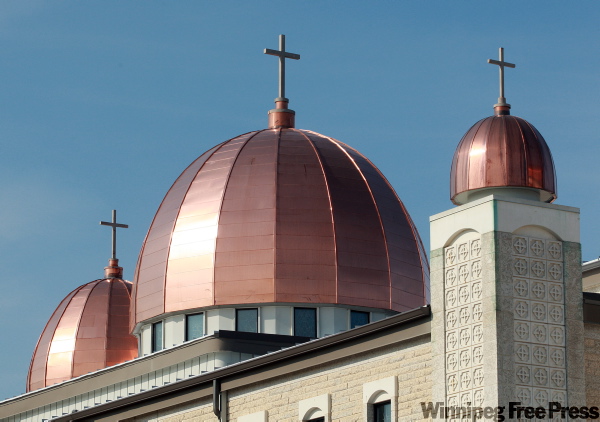 Then roofers looked at some of the battered Ukrainian church onion dome roofs. No thanks. Or else the churches would have to pay the piper. The roof of the new Ukrainian Catholic Church of Resurrection cost $600,000 to repair. An outfit from Saskatoon had to come in to fix it. Fortunately, the church was insured to the teeth. It has gleaming new copper domes today that virtually reflect clouds in the sky.