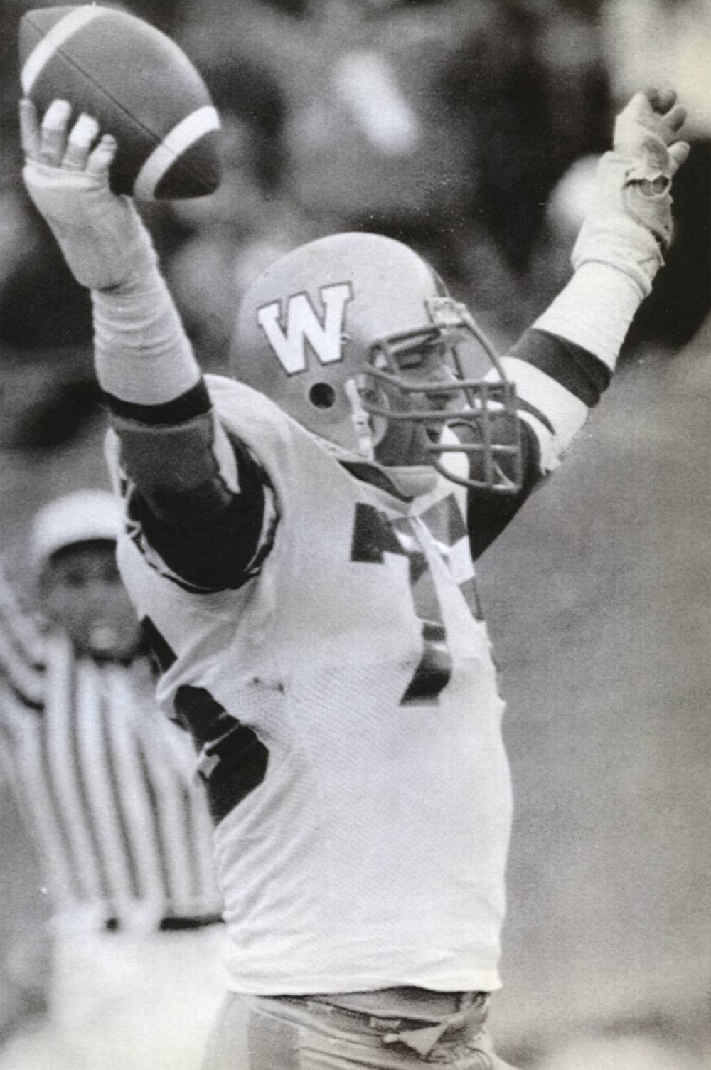Stan: Yeah. Well, that was my third year with the Bombers, and I remember the play like it was yesterday. Just getting off the line, I saw Tyrone Jones rushing the quarterback, Dieter Brock, from the side, and as I was approaching, Dieter dropped the ball.