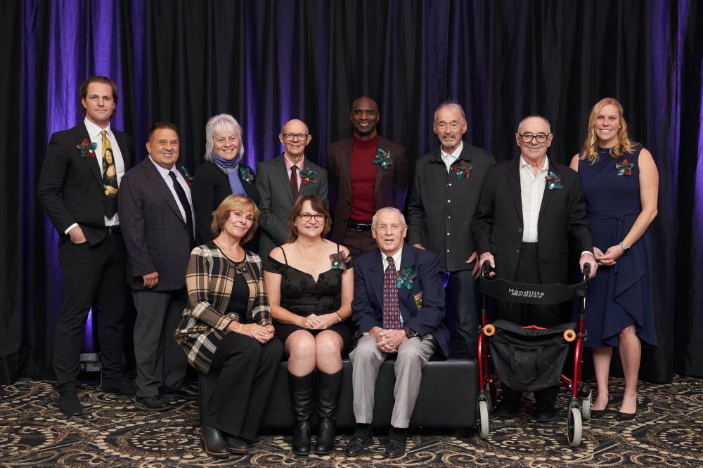 The 2023 Manitoba Sports Hall of Fame inductees and their representatives at Thursday night’s induction ceremony.