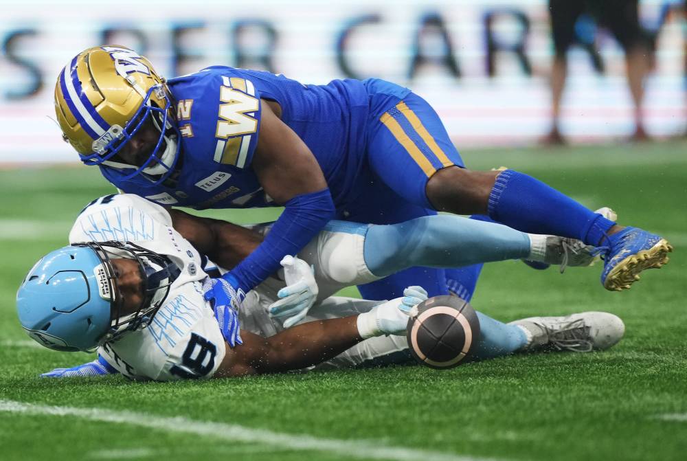 Another costly mistake came on special teams, with returner Lucky Whitehead fumbling the ball, giving it back to the Argos on Winnipeg’s 17-yard line. One play later, Argos quarterback Nick Arbuckle connected on the first of two passing TDs and three overall by the offence.