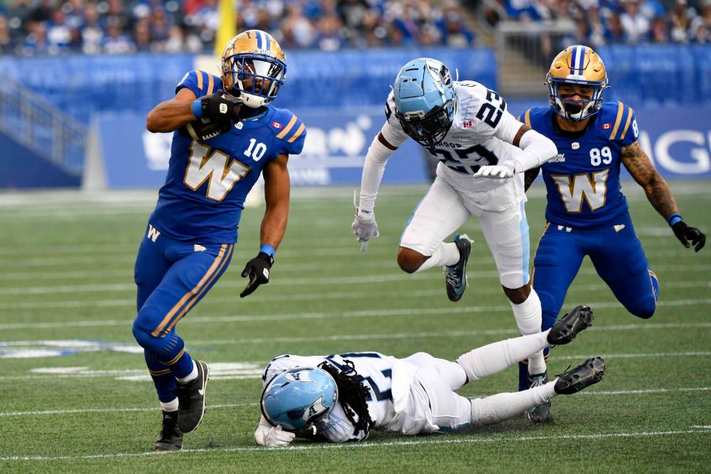The win improves Winnipeg to 4-3 while Toronto, who beat the Bombers 31-17 last week in Toronto, fall to 2-6.