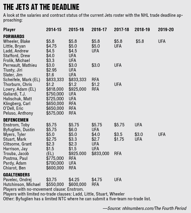 No one would hold it against Kevin Cheveldayoff and the Winnipeg Jets brain trust if they spent the remaining hours leading up to Monday’s NHL trade deadline hunkered down in their war room smoking stogies, joyously clinking their beer steins and simply watching the last of the madness unfold.
