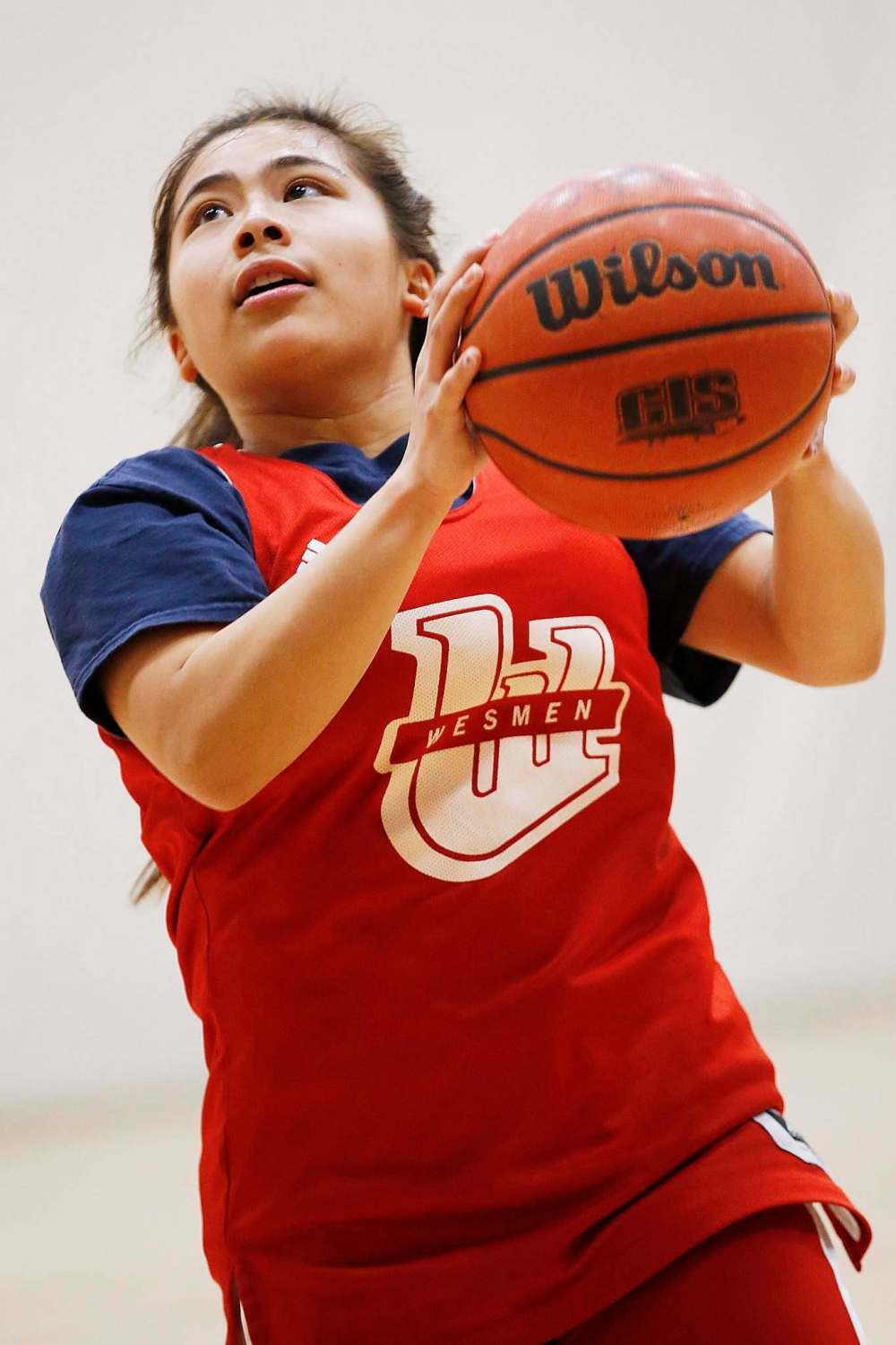 University of Winnipeg Wesmen women’s basketball player Farrah Castillo takes a shot during practice at the University of Winnipeg Tuesday. The Wesmen teams have advanced to the second round of the Canada West conference playoffs.