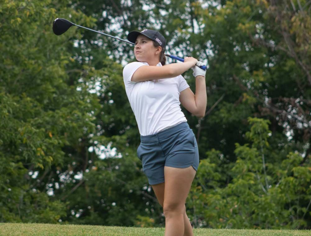 Addison Kartusch was atop the leaderboard after nine holes in the rain-delayed women’s amateur.