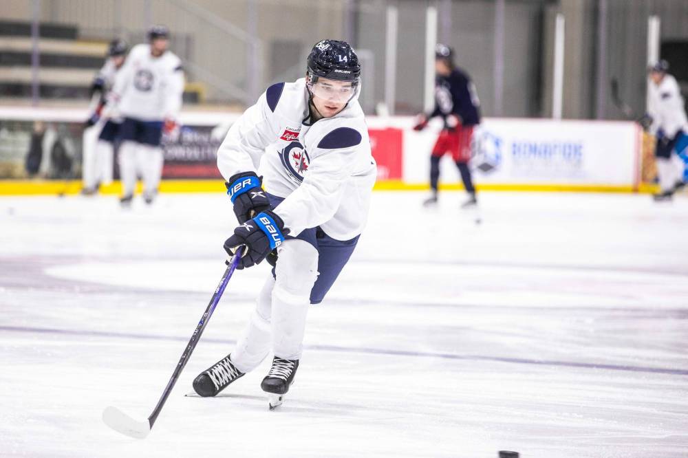 Jets defence prospect Simon Lundmark missed Friday’s workout after blocking a shot on the first day.