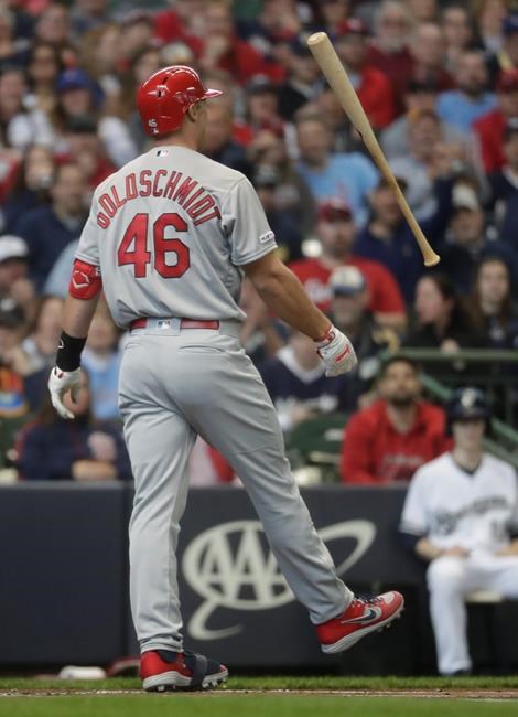 Paul Goldschmidt went 0 for 3 with three strikeouts and a walk in his first regular-season game for St. Louis since he was acquired in an off-season trade with Arizona. The All-Star slugger had a short conversation with plate umpire Gary Cederstrom after he looked at a called third strike in each of his first two at-bats.