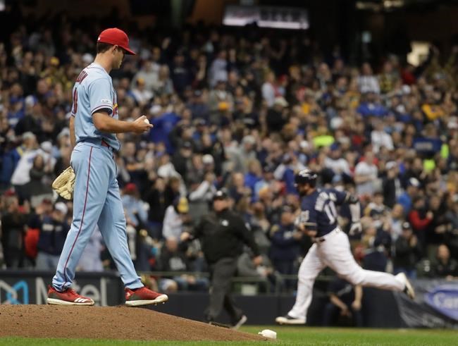 Centre fielder Tyler O’Neill was the only player to make contact. He fouled off Hader’s first offering before coming up empty on the next two pitches. Hader drew three straight swings and misses from Dexter Fowler and two more after pinch-hitter Yario Munoz looked at strike one.