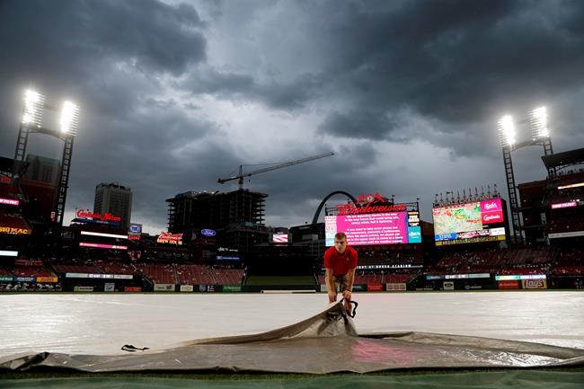 The Cardinals have had five of their last eight games either delayed or postponed by rain. The total delay time is just under nine hours.
