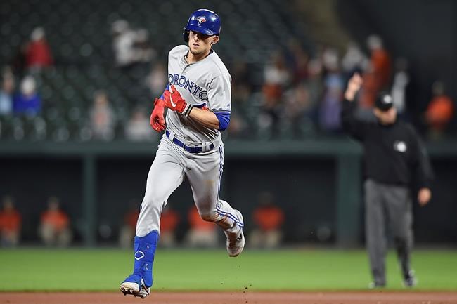 Toronto Blue Jays' Cavan Biggio runs the bases after hitting a solo home run against the Baltimore Orioles during the seventh inning of a baseball game Thursday, June 13, 2019, in Baltimore. (AP Photo/Gail Burton)