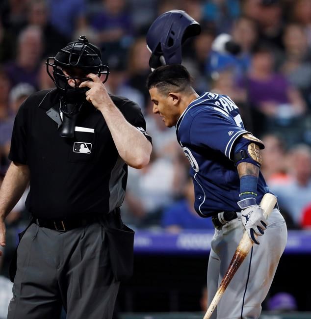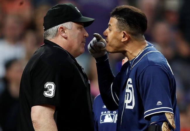 SAN DIEGO – Major League Baseball said it was inappropriate for the umpire’s union to comment on the one-game suspension levied against San Diego Padres star Manny Machado for his conduct following his ejection for arguing a called third strike Saturday at Colorado.