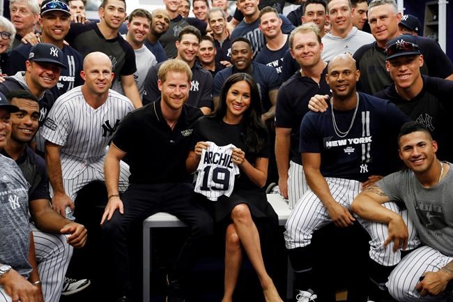 Prince Harry and wife Meghan, the Duchess of Sussex, took part in the ceremonial first pitch before the New York Yankees played the Boston Red Sox. The couple left month-old son Archie home as Meghan made one of her few public appearances since giving birth.