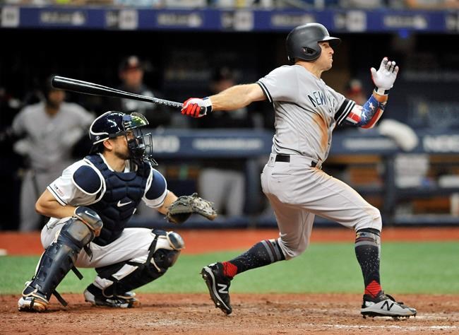 The big slugger also went deep in the first against two-way player Brendan McKay as New York extended its AL East lead over Tampa Bay to a season-high 8 1/2 games.