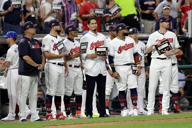 Alomar, a member of Cleveland’s coaching staff since 2010, caught a ceremonial first pitch from CC Sabathia, whose New York Yankees pinstripes will never completely cover his love for the Indians. He began his career in Cleveland, and it was only fitting the big left-hander got to say goodbye in his final season.