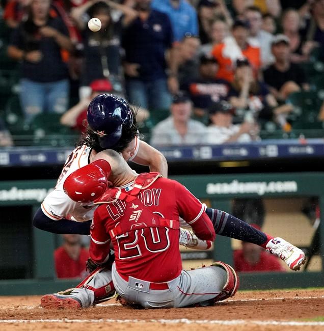 Lucroy was carted off the field after the collision at the end of the eighth inning of a home game the Astros won in 10 innings. Marisnick was called out for colliding with Lucroy, and the call was upheld after a crew chief review.