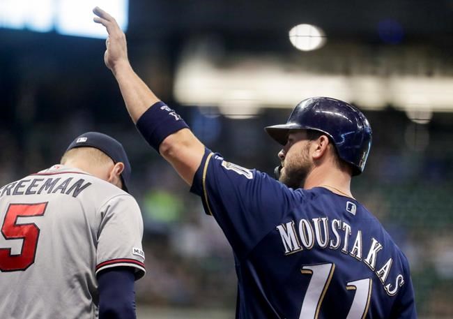 Yasmani Grandal had an RBI single and Moustakas a run-scoring double to push the Brewers’ lead to 3-0 in the third.