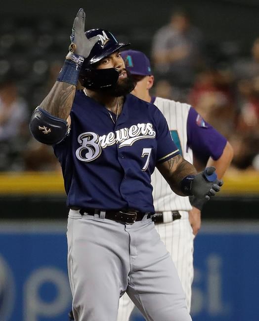While Cain celebrated his acrobatic catch in the first, Escobar doffed his helmet toward the outfield as he walked back to the dugout. The Brewers got more good defence from Cain, who ran down Merrill Kelly’s line drive in the third and flagged down Carson Kelly’s deep fly in the seventh.