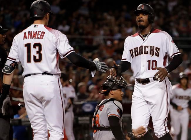 Baltimore’s Anthony Santander scored on Richie Martin’s blooper to left field, which Diamondbacks outfielder Jarrod Dyson dived for but couldn’t catch in the second inning.